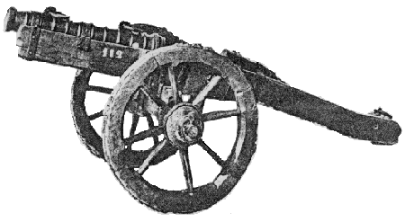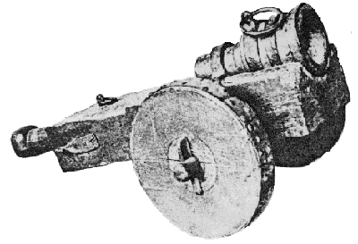 Canon: chambre à poudre amovible ou 'boîte' d'un grand veuglaire, moulée en fonte et contenant son boulet de fonte.