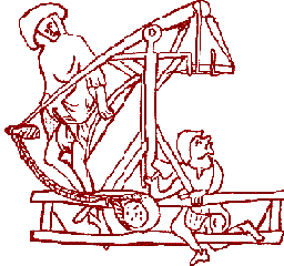 their own, a deserved honour. Ballistae: There seems to have been a rise in the popularity of recreated twisted-skein devices. I may have to create a separate ballista or ballista/onager section. At the moment these sites are listed under "Not Trebuchets but..". Slings: In the pipeline for the Grey Co Trebs site is a page on slings and staff slings. This page is only about half-finished but there's a lot of informative historic sling images out there. The connection between the staff-sling and trebuchets/catapults (a "shoulder-launched trebuchet"??) makes this a natural next step. Editing continues, but in the meantime the addresses on the links list still work.. despite the end-of-99 maintainance/backup frenzy that had about 1/3 of the list unavailable for several days.
