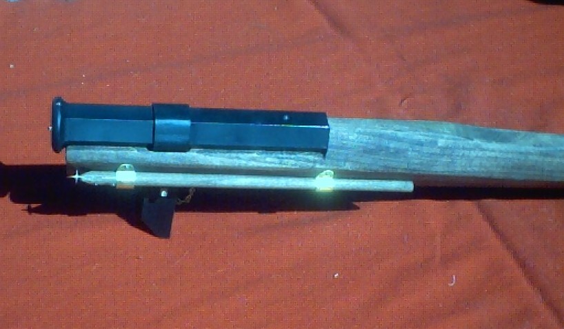This is the standard .69 Hussite Handgonne currently being made by Handgonnes.com. It is different from the one being built for me in that it is a .69, has a blackened barrel, and has a chain to attach the wedge to the stock just i case it comes loose. The lady above is Little Cougar (Graywolf's wife).